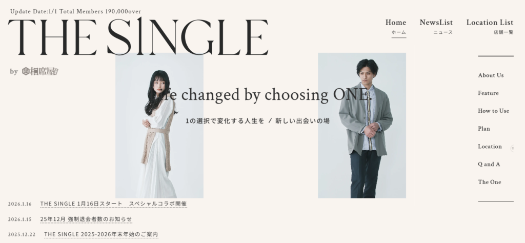 THE SINGLE」は、1対1の相席ラウンジを運営しています。